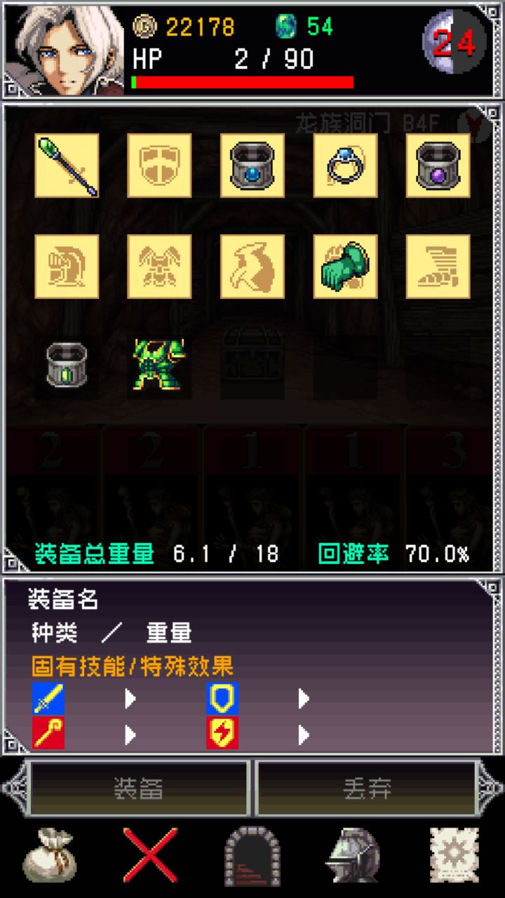 肝了一天,大致了解游戏,可能有的地方不对:基础:1.游戏首页教程一定要看,一定要看,一定要看2.可以对自己使用物理牌进行防御, 防御后不能进行打牌,盾牌有防御加成.3.战斗中每使用道具,或者换一个装备要废3行动点4.3级红治疗毒,4级治疗石化,5级万能5. 属性相克依赖武器,建议白银武器6. 敏捷和闪避相关, 闪避最高60%, 敏捷-负重=闪避7. 双手武器好像很废, 但是强化等级