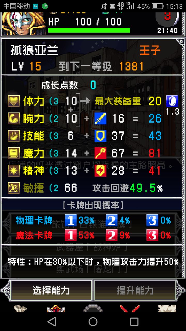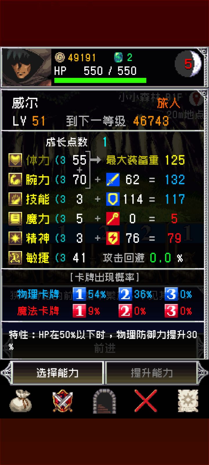 请一定看完所有内容!!这将让你少走弯路,玩的更爽!(来看角色评价的也建议先看完前边)在开始正篇之前,我先介绍下这游戏的属性体力:加血上限,加人物承重上限腕力:加物理伤害,武器的使用要求需要达到一定腕力数值,属性越高的武器,腕力要求越高。增加蓝牌出现概率。技能:加物理防御,增加蓝牌的出现概率。魔力:加魔法伤害,增加红牌出现概率。精神:加魔法防御,增加红牌出现概率。敏捷:加回避率(总回避