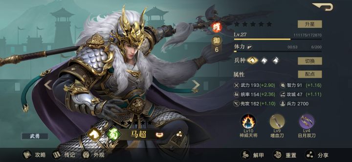 各位看官老爷子,楼主的第三篇武将攻略马超马超这个英雄很强,但是也很难获得,而且马超要打出他的威力必须你得要有两个马超,他自身的拆解宝物是必定要有的,如若不然,你的马超伤害将会大大降低可以看到马超的输出伤害完全依赖于平A,这就需要连击、普功增强来增强输出,虎头强是一个非常适合马超的一件宝物,不仅能增强普功输出,还能有一个额外连击效果这对于马超的收益来说是非常可观的阵容的话推荐四骑,二赛季推荐