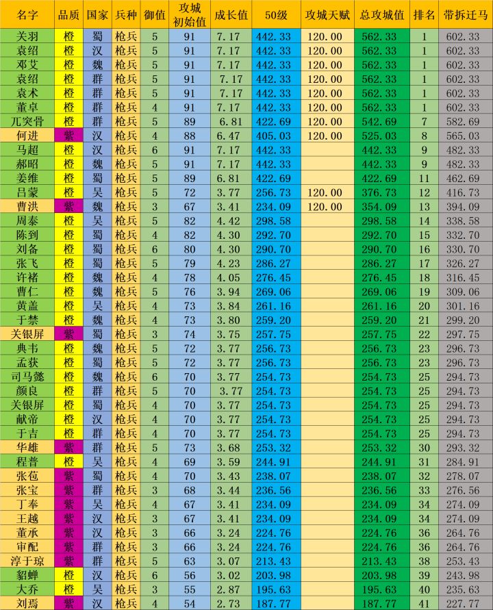 本次带来一个枪兵纯拆迁的想关数据现在一队满级的纯拆迁+满级投石车(490攻城值)+拆迁马+满级陷阵营的加成(25%)能达到3000+以上的拆迁值,是很恐怖的存在
