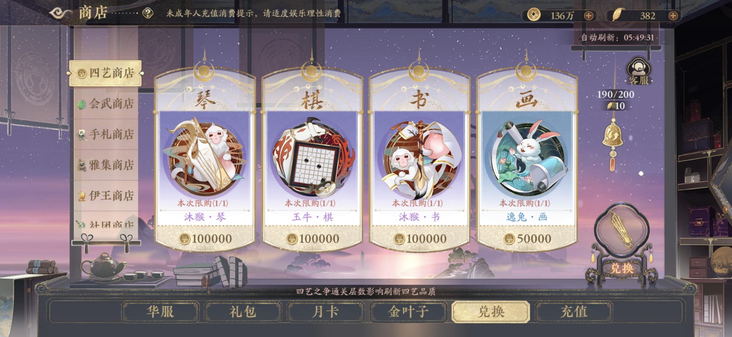 四艺商店刷新概率