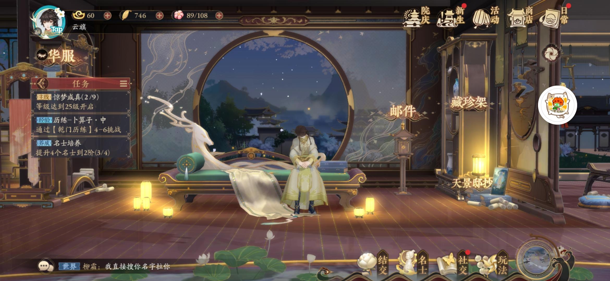 超喜欢这种古风学院然后又能云游四海解决问题的游戏,没事还能打打牌,就是没遇到亲友,顺便蹲一波。发现这个游戏里的男女都好好看。(鄙人正常男性) 发现看男的和女的都养眼之前看过带节奏的帖子拿忘川比的。但是,我感觉这游戏社交比忘川还好。适合我这种现实唯唯诺诺(不怎么敢和女孩子说话),而在网络上大大咧咧的男孩子去玩一玩。虽然说是培养错了会出现问题。但是我还是按照自己喜好练的角色。(UR必练) 剧情对于一些人来说有点冗长,但是对于我这种剧情党还是很适合的。就像看小说一样。但是缺点在于卡级。剧情就断了。然后希望官方能出更多的社交游戏,除了打牌再多点什么演奏之类的(音律课) 再加上其他的小游戏。最后的最后,蹲一波好友,加好友的留言呀!