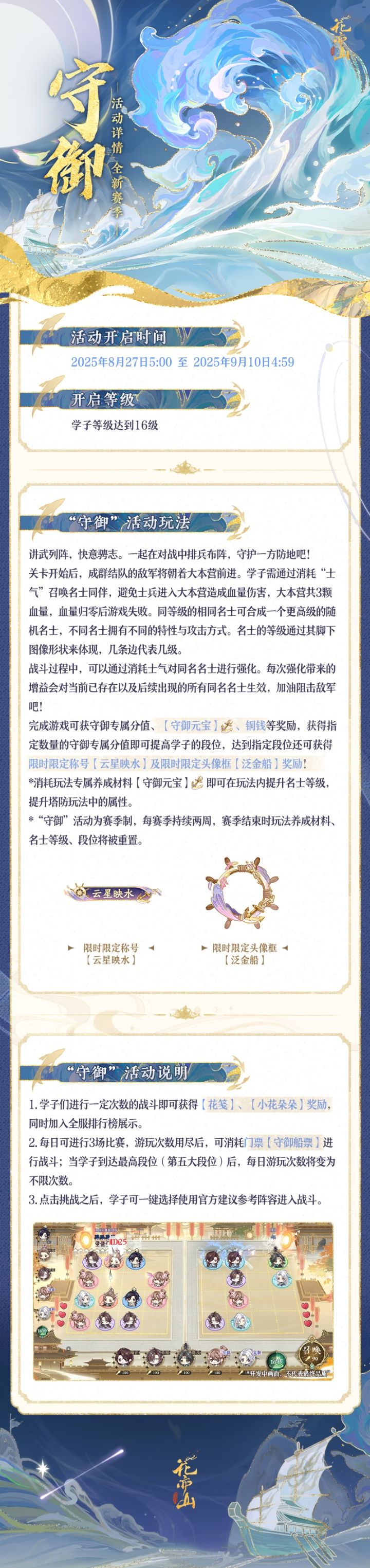 讲武列阵,快意骋志。守御全新赛季活动将于8月27日开启,更多具体活动内容请见长图。