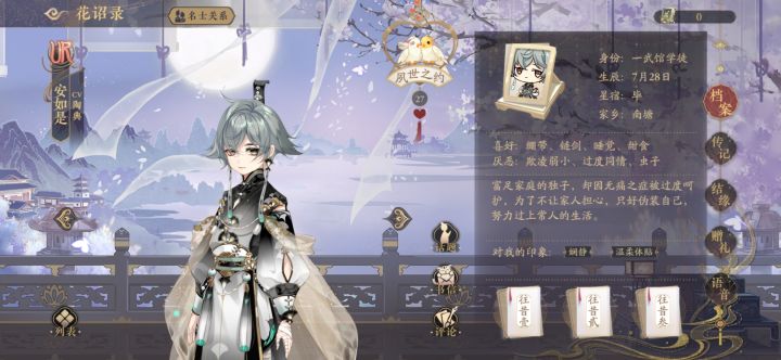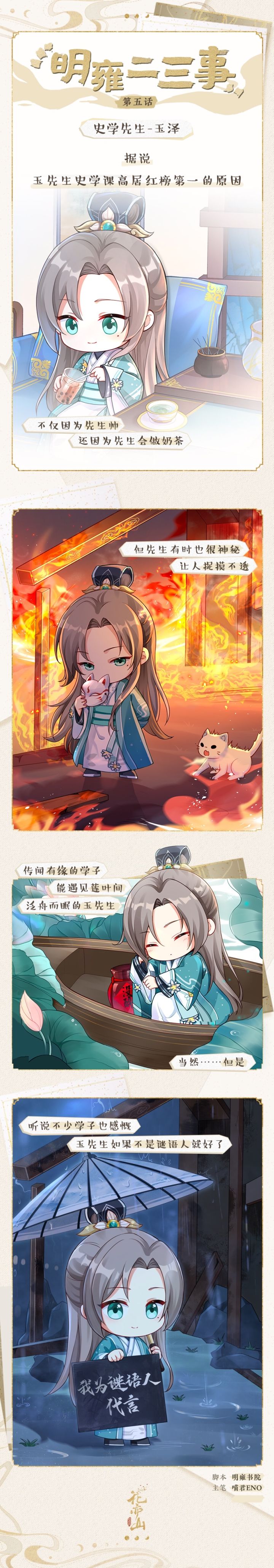 明雍书院各式各样的课程中,要说最受大家欢迎的,那定是红榜第一的史学课了。作为史学课先生的玉泽除了书教得好,还掌握着一些奇怪的技能,例如做奶茶。先生看似温和可亲,有时却十分神秘。成为明雍第一谜语人的背后,玉先生到底经历过什么呢?>>>脚本:明雍书院主笔:喵君Eno