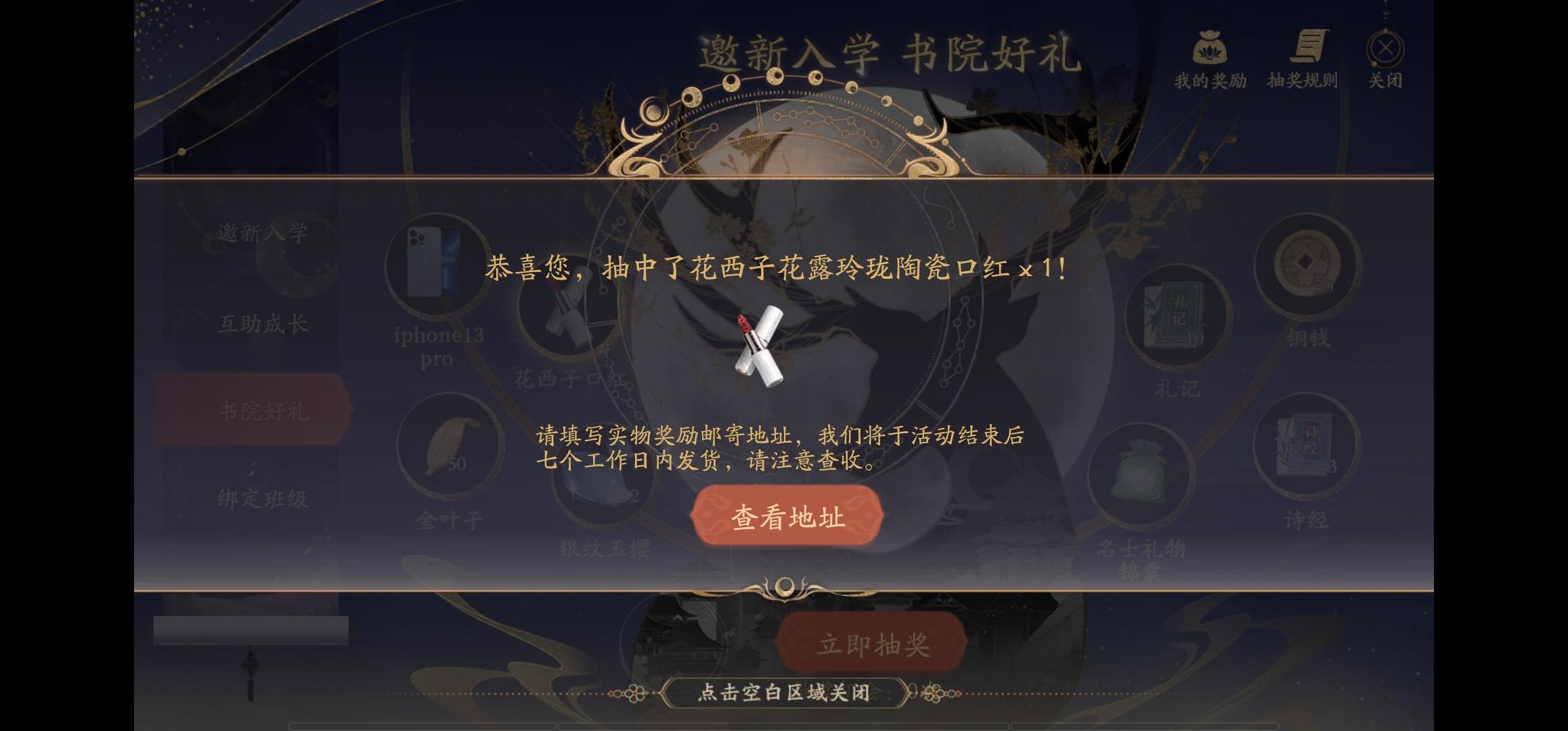 有人互点嘛,入学明雍书院领好礼,一起来玩高颜值国风书院养成手游《花亦山心之月》,赢取iPhone13pro及花西子口红好礼吧!https://act.snssdk.com/ugg/6176579142c01b25?invite_token=1hg34s1k1rj7y&game=flower