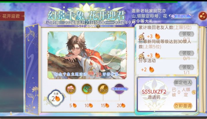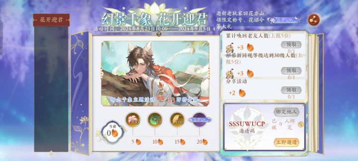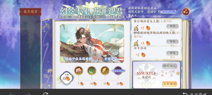 SSSUFY8T有没有姐妹要回游的,填邀请码😭#花亦山心之月