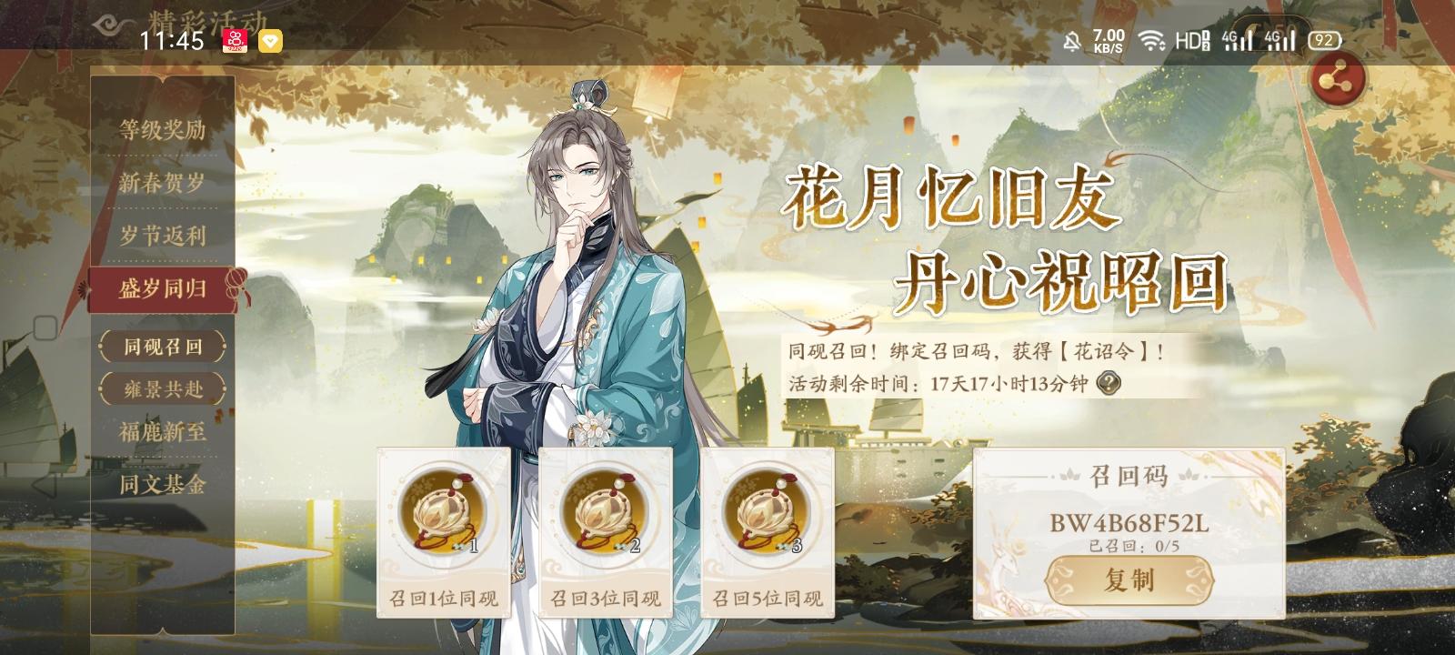 BW4B68F52L,有没有回归的玩家呀?这是我的召回码,qaq