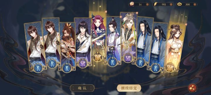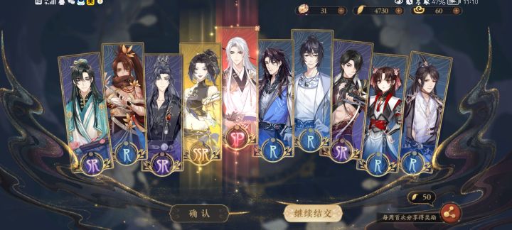 感觉这个号运气还可以,自选十连出了伽华新卡六十抽拿到的