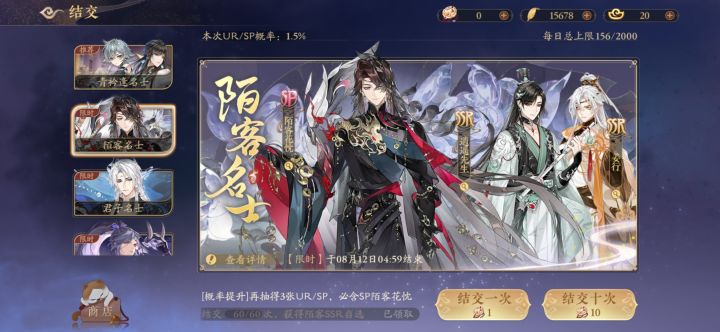 p1是抽之前,此时池子已经是垫了50抽的大保底必出池子p2是抽完后,(还好第三次没歪,要是歪了hys我真和你拼命了)我还是低估hys了,156抽就出三次红,每次不是60抽才出就是60抽往上才出好好好,sp哥满破无望,本来想能抽到四只就不管暑假的cp卡了直接满破,现在还是算了,我的叶子不允许我再放肆了。金玉也留一点算了,我也不是群攻队,拿个名片就收手……上次下池还是sp步sp