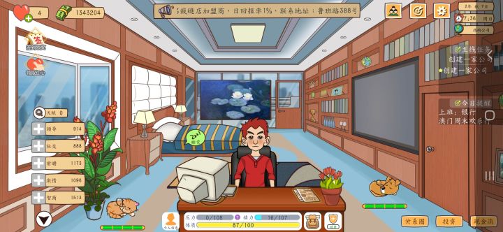 2.赚钱最快是开发商+投资(大型公司之后解锁),开发商的游戏销量会高出很多,结合每周小喇叭的小道消息去打对应的广告(如户外对应街头广告,一类广告有条件全点满,以周为单位)