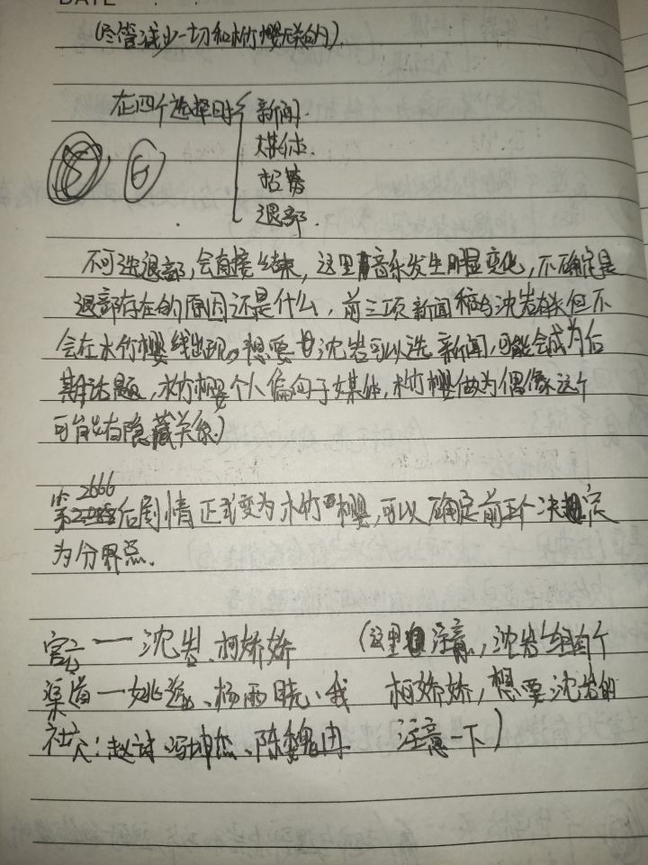 作为一个刚入坑的人,是因为朋友的推荐,听说这部游戏比较刀,所以来试试看对这部游戏的画风,做工以及各种细节处理感到非常满意,但是我这边游戏似乎出了些问题,我在用了两个小时,把木竹樱的所有主线以及选择项的细节列了出来之后,甚至已经渗透到了沈岩的部分,并且我明确的发现了一个分界点,但我去选择的时候,系统就会自动给我分配到他的固定点,导致这个游戏它会存在一个确定点时,我的游戏结局始终是在木竹樱的线上,我也多次尝试过重新开始,但并没有用处,希望官方可以处理一下,最后奉上我的一些个人总结字不太好,不要喷😁😁