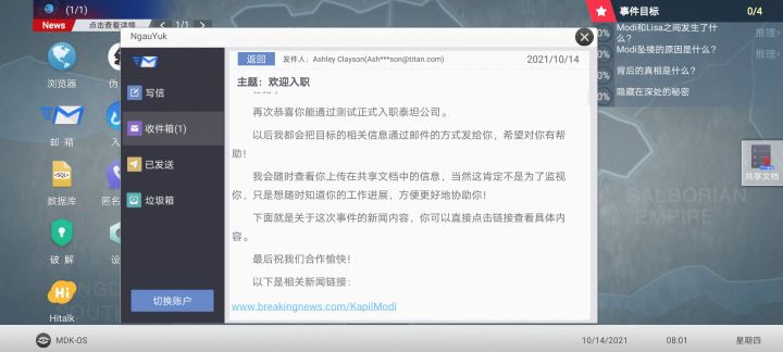 遇到bug了,第四章第二个推理完了后打电话卡出去了,进来就不能进行下一步的利用舆论为泰坦洗白的任务了
