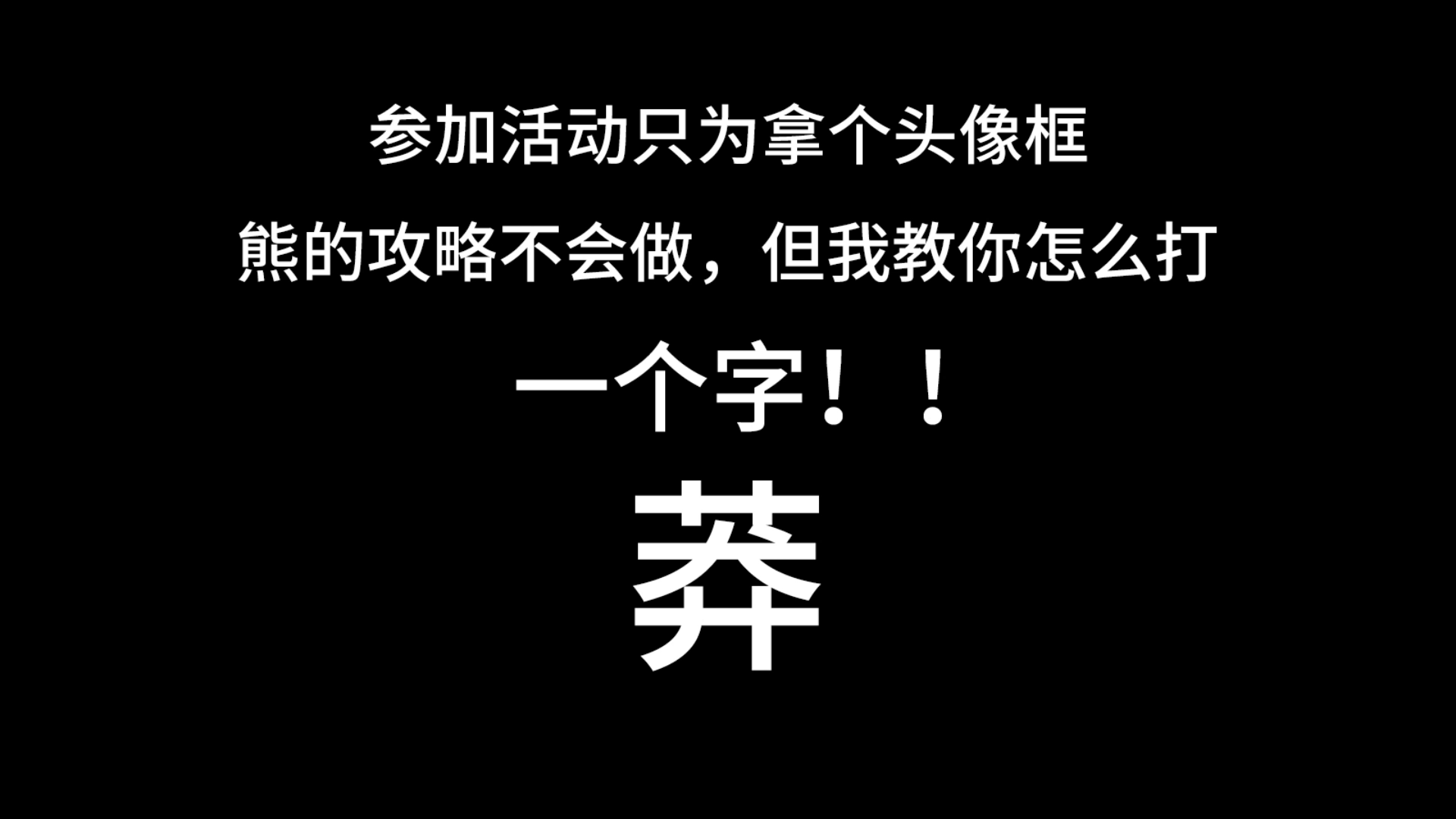 现在大熊pvp基本都是白给,非常怕贴脸。起手慢后摇大,完全没有官方宣传的霸体克星的感觉。建议不要听官方的,激斗要带霸体相扑那个,比防反好用太多,尽可能不要用大熊pvp。还有,为什么这次活动大熊没有头像框?!
