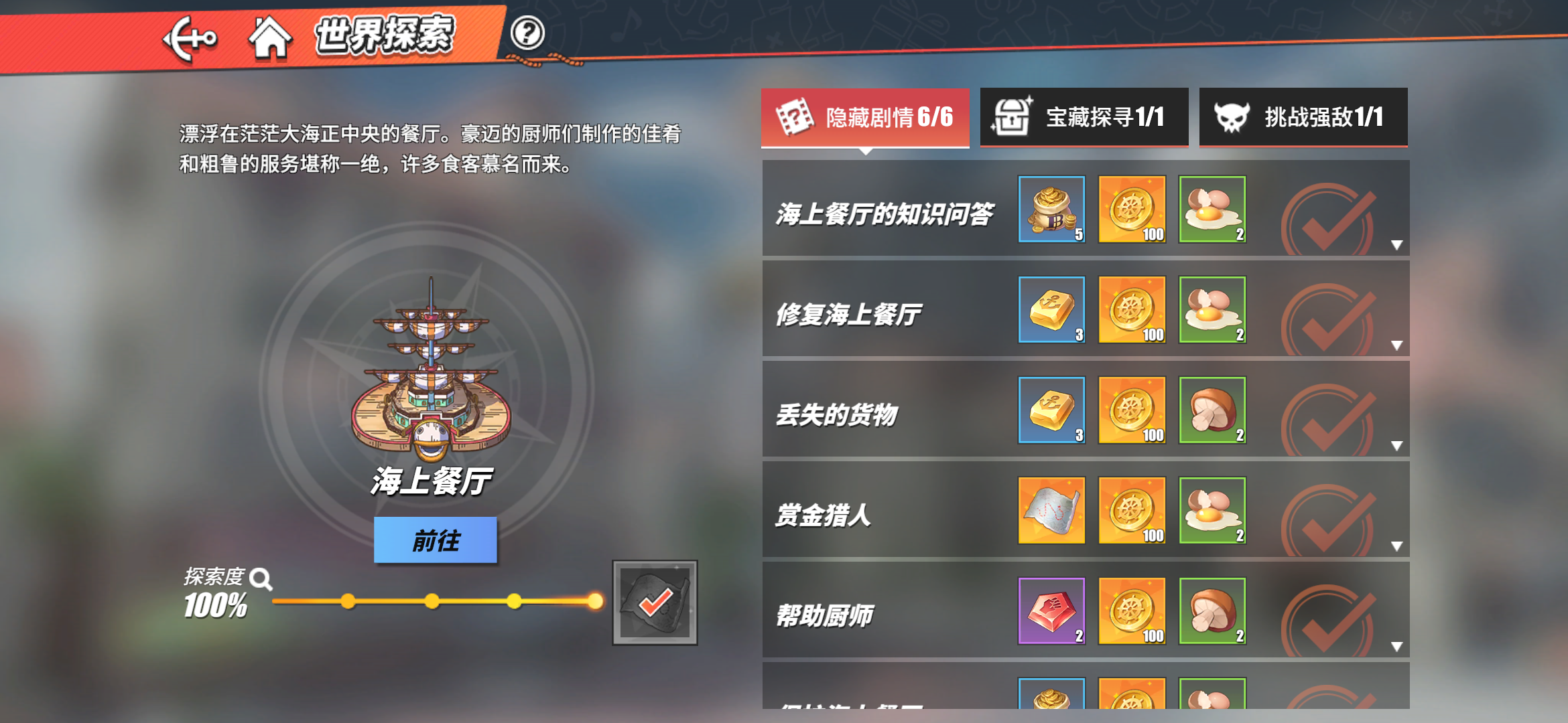 “海上餐厅”世界探索攻略