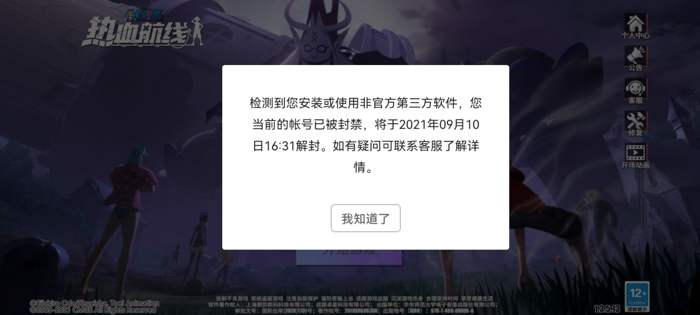 中午登录抽大熊,下午登录就被封号,直接一周套餐,这一周套餐不就是劝我退游的嘛,开服到现在,从来没有用过第三方软件,这到底是什么东东,无语。🙄🙄🙄