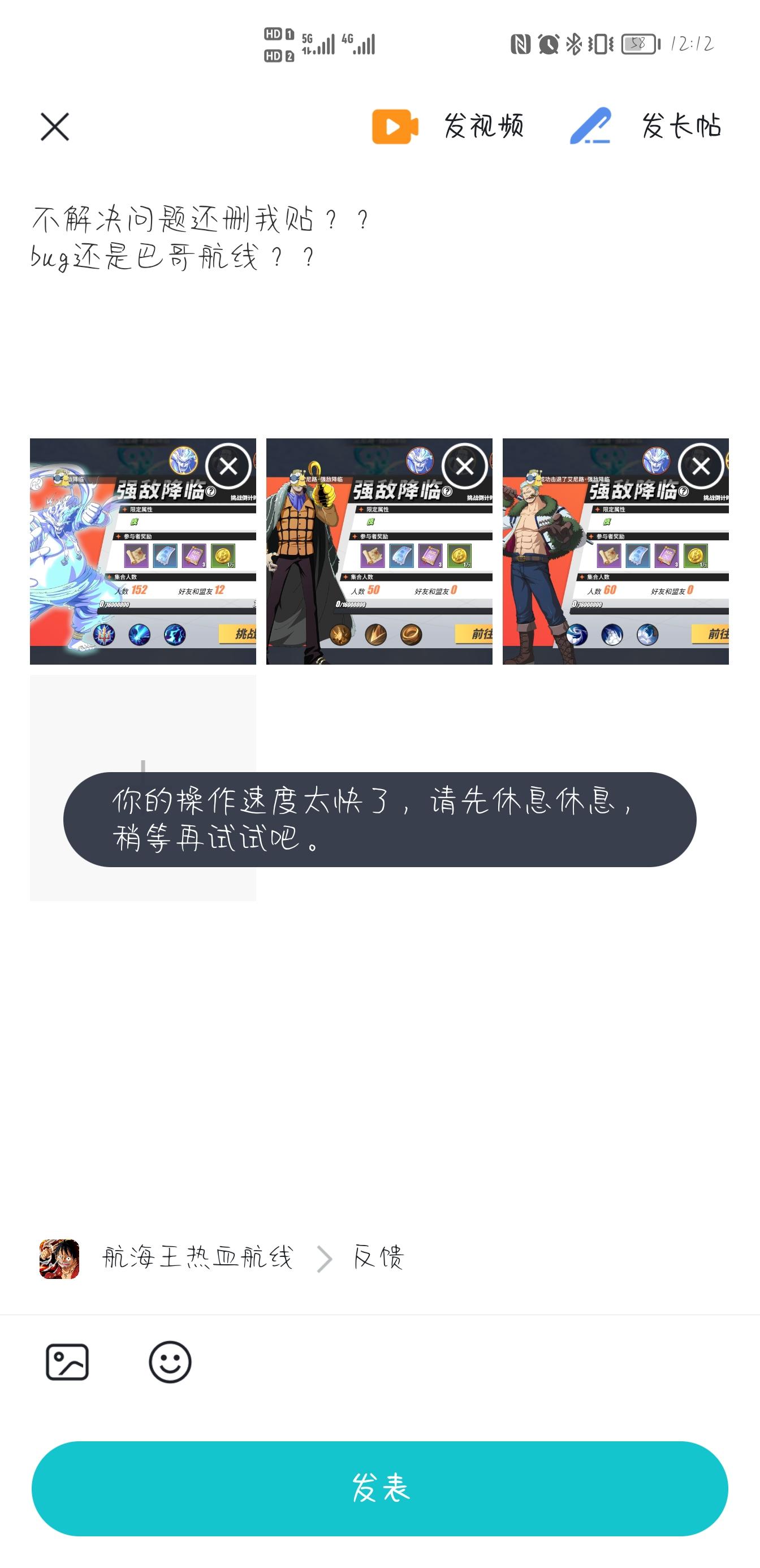 我是海贼王粉丝,看了十一年了。只要游戏不搞什么阴间活动我都无所谓。我就是冲着海贼去的。至于游戏的bug问题,对我来说都无所谓。但是我有一点特别不爽这个游戏,现在只出ss级或s级的人物,但是海贼王真正让我着迷的不仅仅有七武海,四皇,还有一个个小人物。你现在一个小人物都不出,这就说不过去了。我认真希望,策划可以吧一些ss级人物放一放,出点小人物,让我知道游戏有在认真的做。好吗?