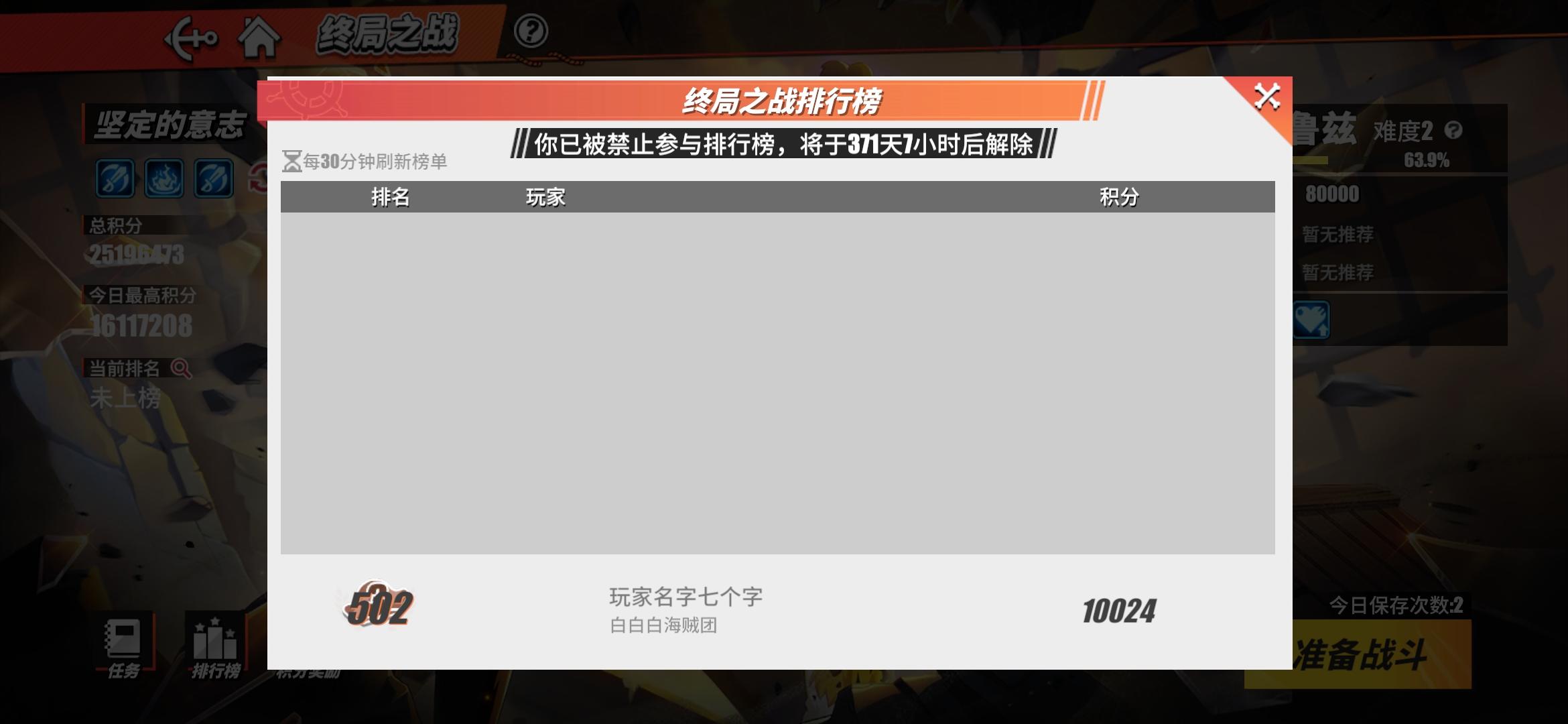 可以问问原本号给别人打被封了排行榜365天,前面已经过了70多天了,可能是修复了一下登录的bug结果给我天数直接干371天去了。人傻了