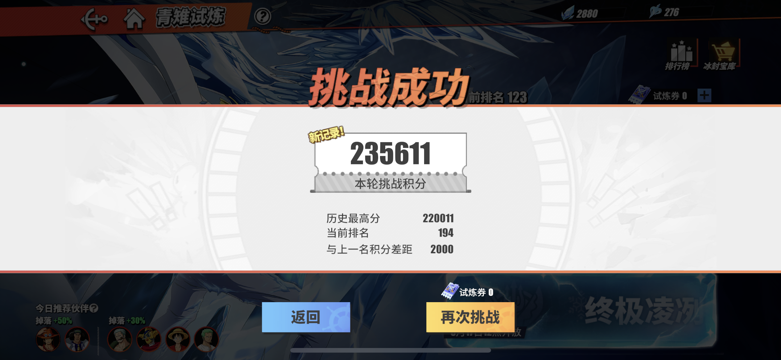青雉试炼排名是怎么算的为什么第一名21w,我23w不显示啊。排名还一直往下掉。