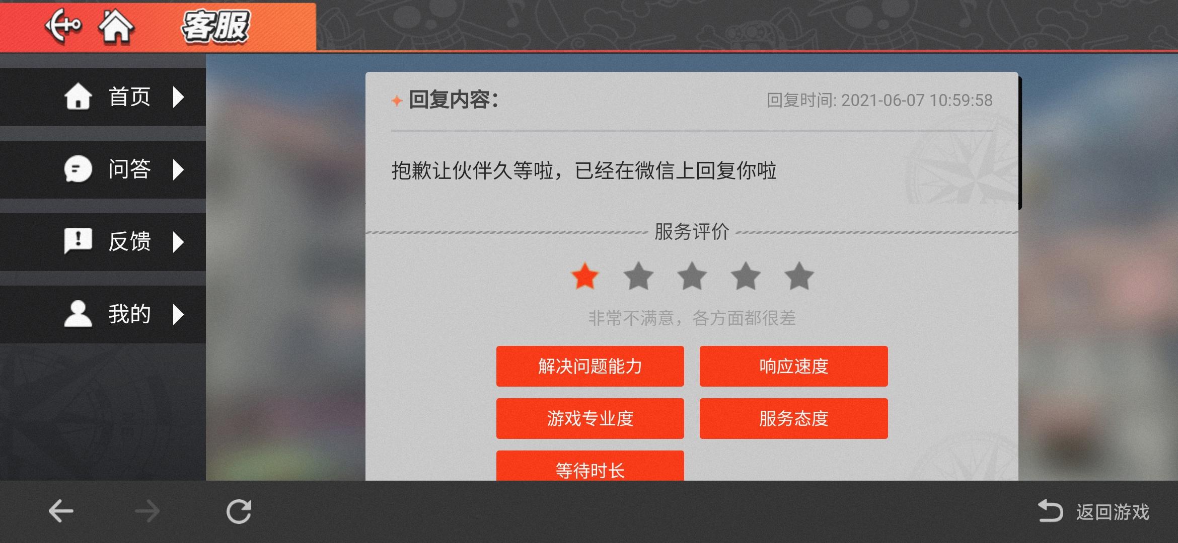 这游戏客服都开始欺骗玩家了吗?我微信毛都没收到!而且自动把我的单子给结束掉,连一点沟通的余地都没有!这尼玛不黄天理难容!