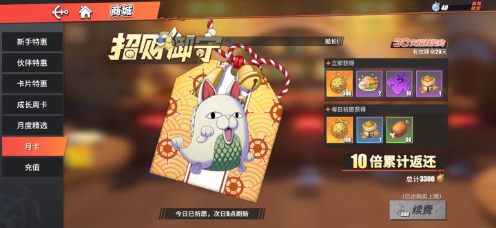 请问gm大大,这个月卡咋回事,1241一共开服35天,买了两张月卡,还剩20天,请问是怎么计算的?