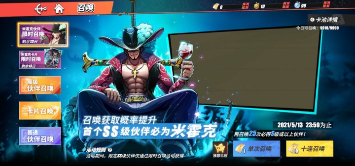 90发必出?我老沙是五十来发出的,而且还是十连挺前面出的,后来慢慢玩,召唤了两次s,两次全是35发出的。一个罗宾一个巴基,就算不算老沙后面的几抽,现在也有了70发,后面有陆续抽了十发,今天还剩十发保底,本来80没出就很难受了,就直接索性氪金搞了最后十发,然后来了个乌索普,ss呢?我现在很疑惑,我的ss呢?抽卡规则明明写着90保底,前面两个s35保底我认了,现在ss90保底都抽了,要是是保底我也认了