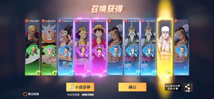 本身我对国内动漫ip游戏运营的都比较失落,第一有国际服不去玩非要来送钱!第二就算你充钱也抽不到想要的角色!第三就算被你抽到了没多久出来新角色!国内现在游戏主要学日本抽卡机率,都知道日本很多游戏就是靠抽卡当赌博,欺骗玩家的,网上可以搜的到当初玩家多次抽卡到了保底等概率同样抽不出s或ss卡,玩家把游戏公司告上法庭!第四海贼王最好的ip还是日服航海寻宝,除了日文看不懂以外,随便十连抽就是6张红卡