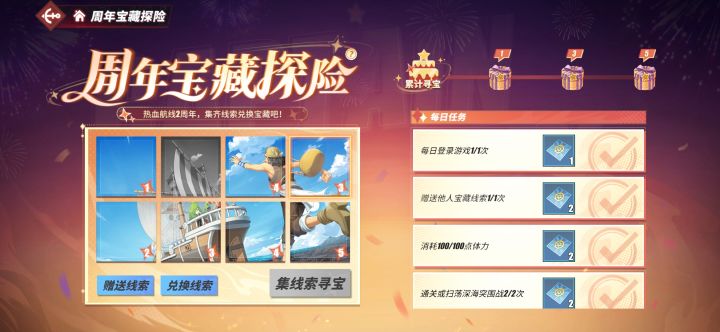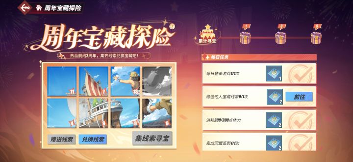 从刚玩到现在,每个角色都是保底,抽祈愿池,也是每天疯狂做任务,攒金果金券,本来想着好不容易可以拥有一个路飞,结果给我歪了一个路奇,每天体力清完,用完,地图探索度也做,现在能用的资源都用完了,感觉下一个角色也遥遥无期了😭😭😭😭😭