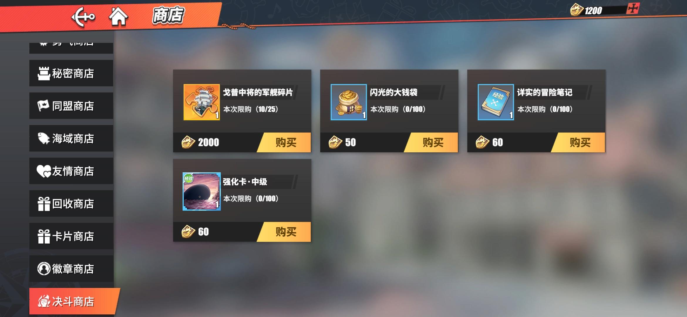 决斗商店的商品丰富一下吧比如20碎的B船、50碎的A船、卡普的碎片、助战档位扩展等buf类道具,这样大家才有兴趣买次数去打