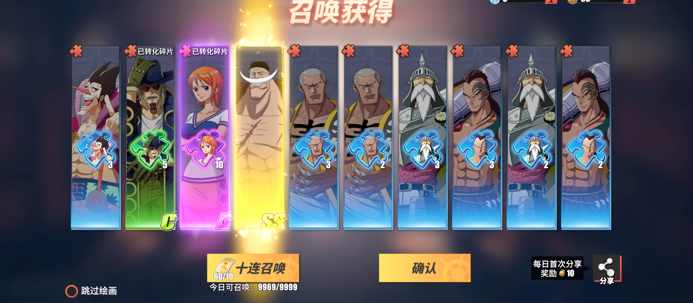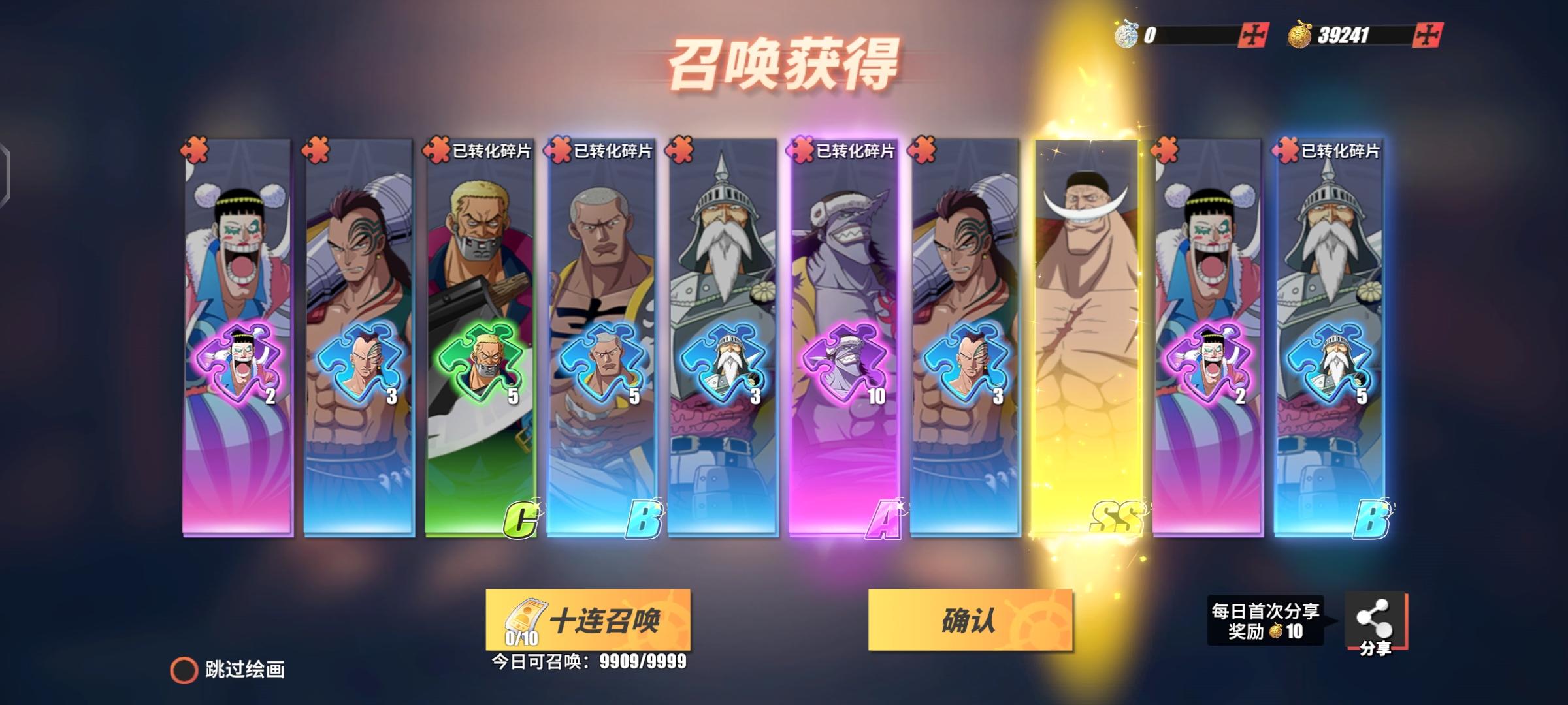 攒了90劵,三十张就抽到白胡子了