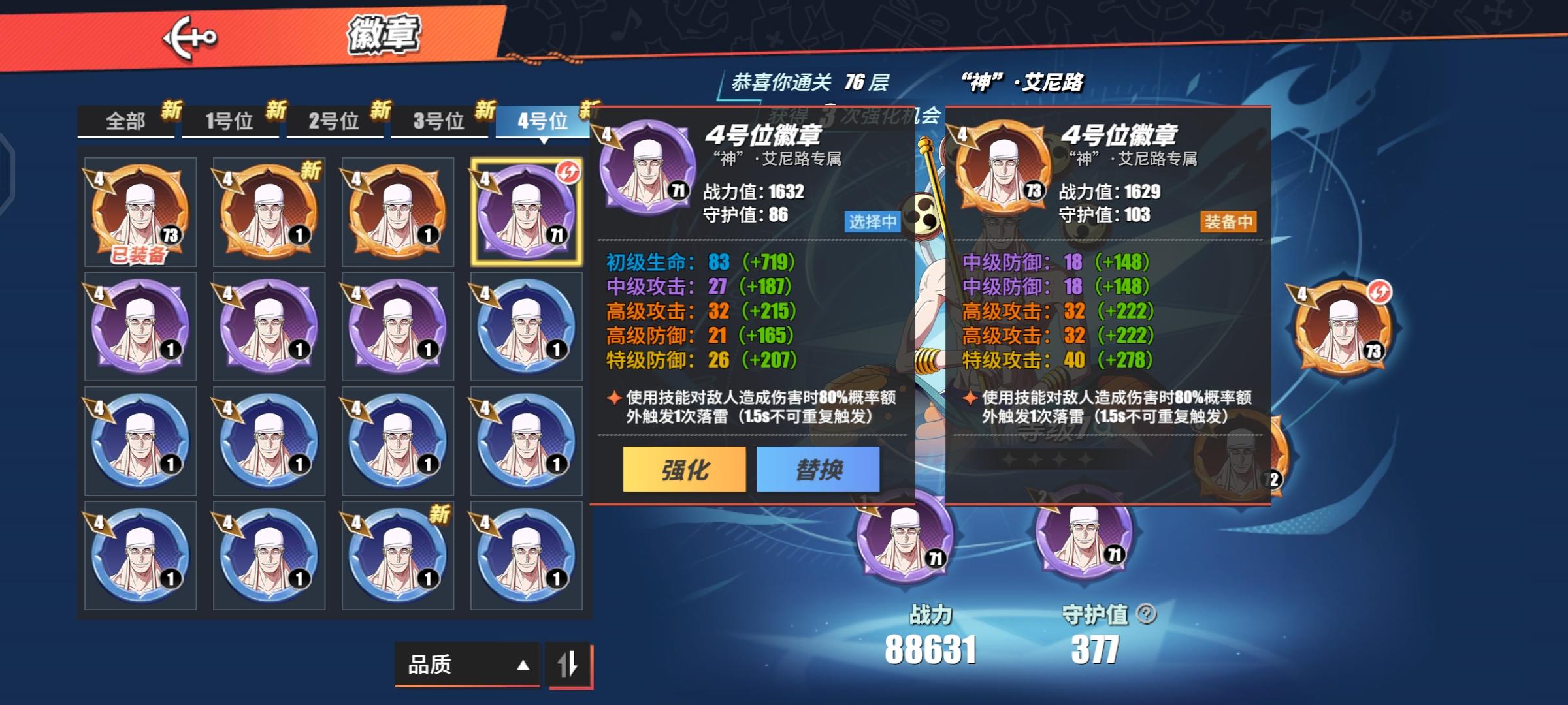 为什么73级三攻击的金徽章,还没71级1攻击的紫徽章战力高呀┐(´-`)┌不会防御力加战力更高吧 →_→