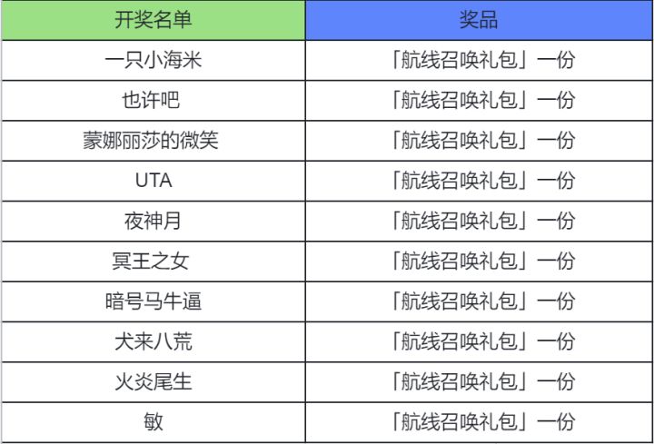 恭喜以下船长获得航线召唤礼包1个,请船长在7个工作日内添加工作人员的QQ2402848532,提供自己回复截图以供核实信息,工作人员会在2个工作日内发送奖品~乔小巴最近发现同盟里潜藏着很多“大文豪”!他们不仅积极参与作战,每天还会在同盟签到板上留下自己的杰作,拿走宝藏分红!同盟签到是游戏中的趣味玩法之一,船长们每天参与签到,第二天就能拿走分红,签到的人气越高,分红就越多~本周的话题是:你会在