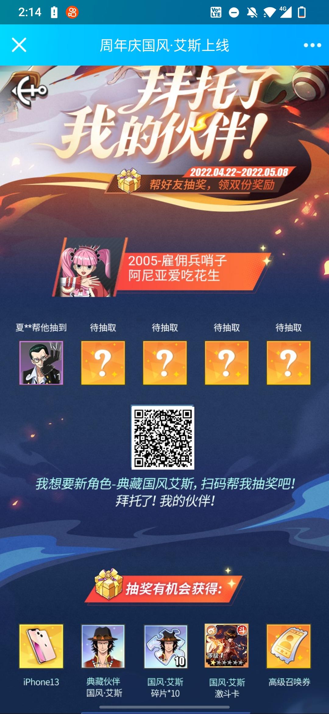 新典藏角色艾斯,参与抽奖奖励成双!点击链接帮我抽奖吧,拜托了!https://act.nvsgames.cn/gms_page/5RSmv4isc1/gms/caca283b69/?tk=ZZZVWU24&orientation=portrait&__gms__platform=mobile