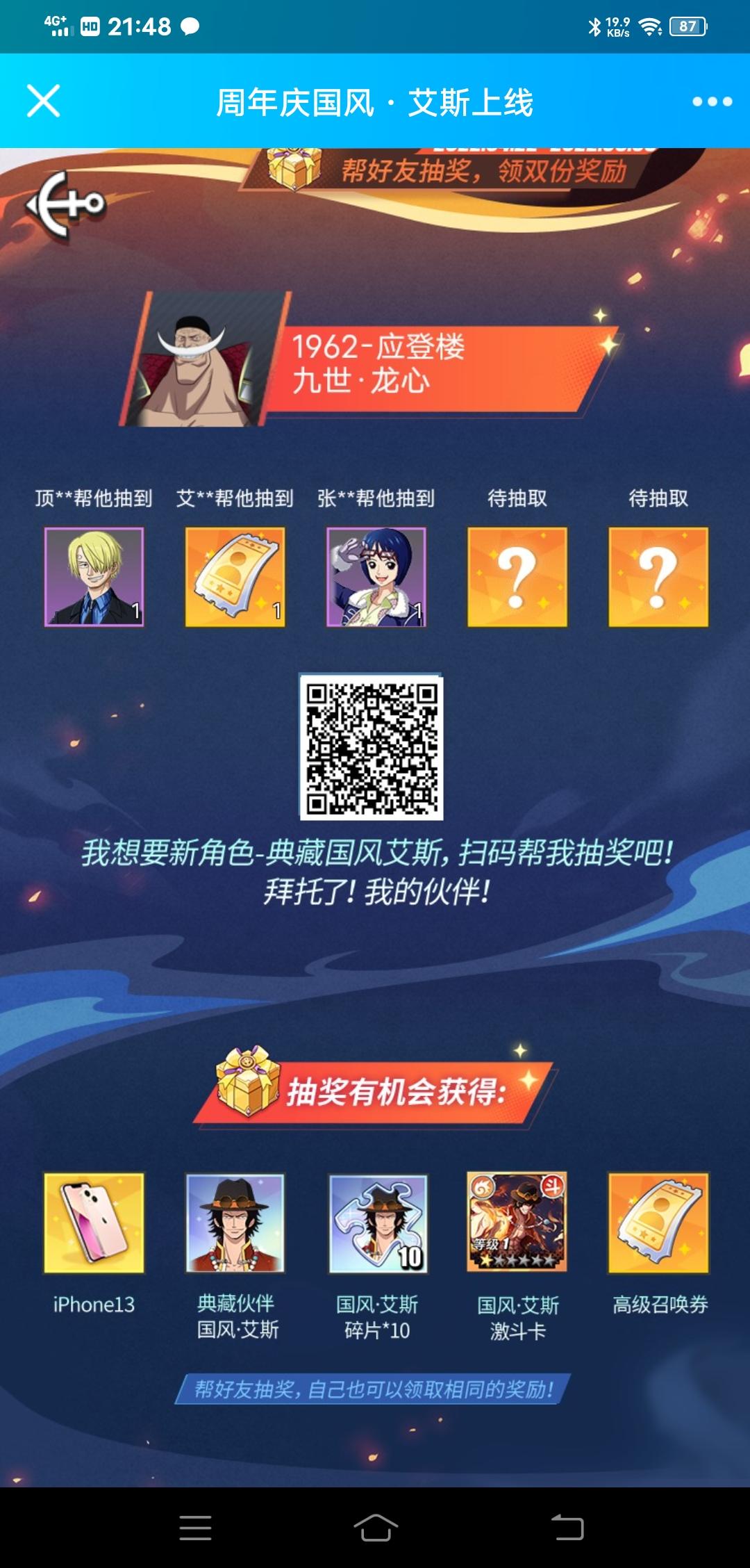 热血航线一周年!我想要新典藏角色艾斯!拜托你了好兄弟,帮我抽卡吧!https://act.nvsgames.cn/gms_page/DkT_loZyO7/gms/caca283b69/?tk=ZZZVWVFP&orientation=portrait&__gms__platform=mobile
