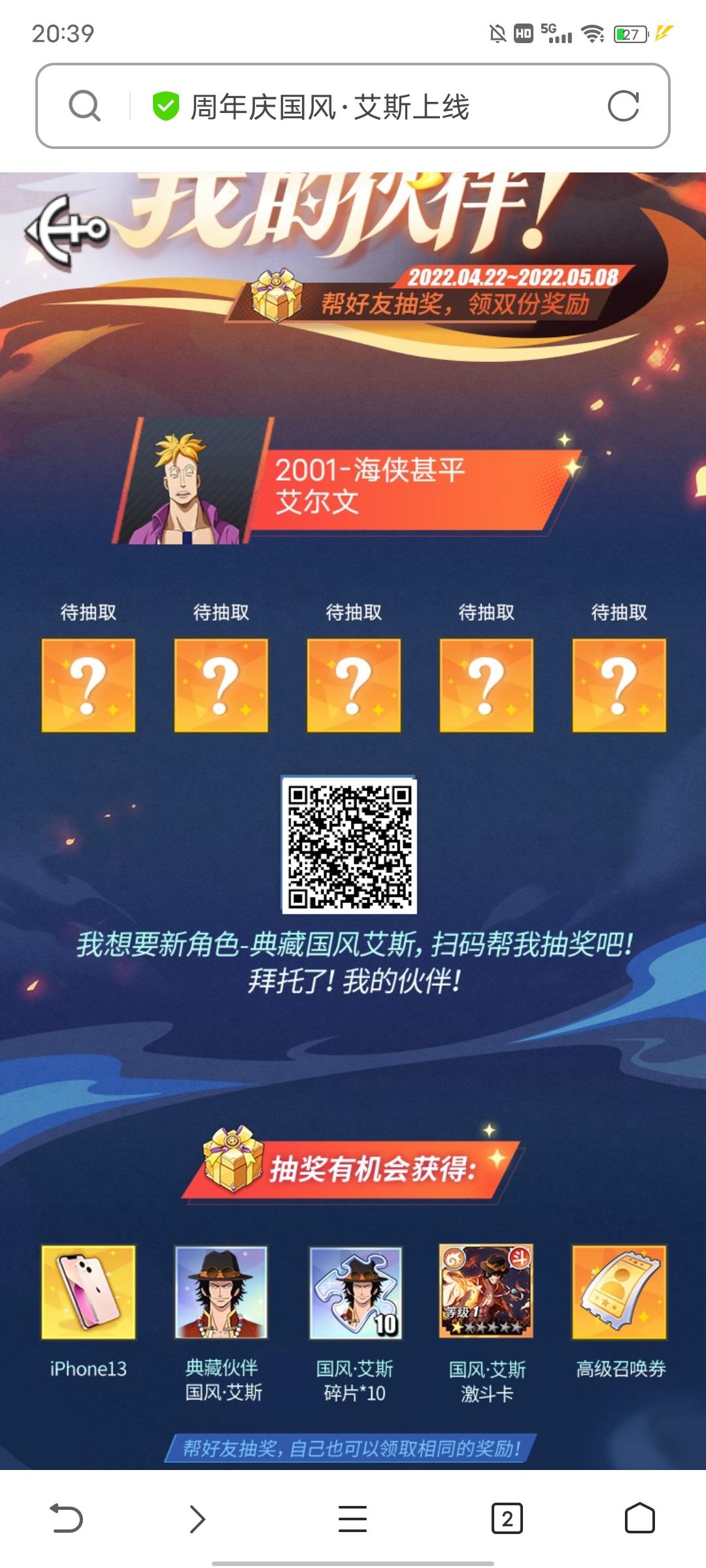 互助兄弟们🙏🙏🙏热血航线一周年!新典藏角色艾斯上线 点击帮我抽奖,有机会的新角色艾斯! https://act.nvsgames.cn/gms_page/V9xN9P4MQo/gms/caca283b69/?tk=ZZZVPR68&orientation=portrait&__gms__platform=mobile