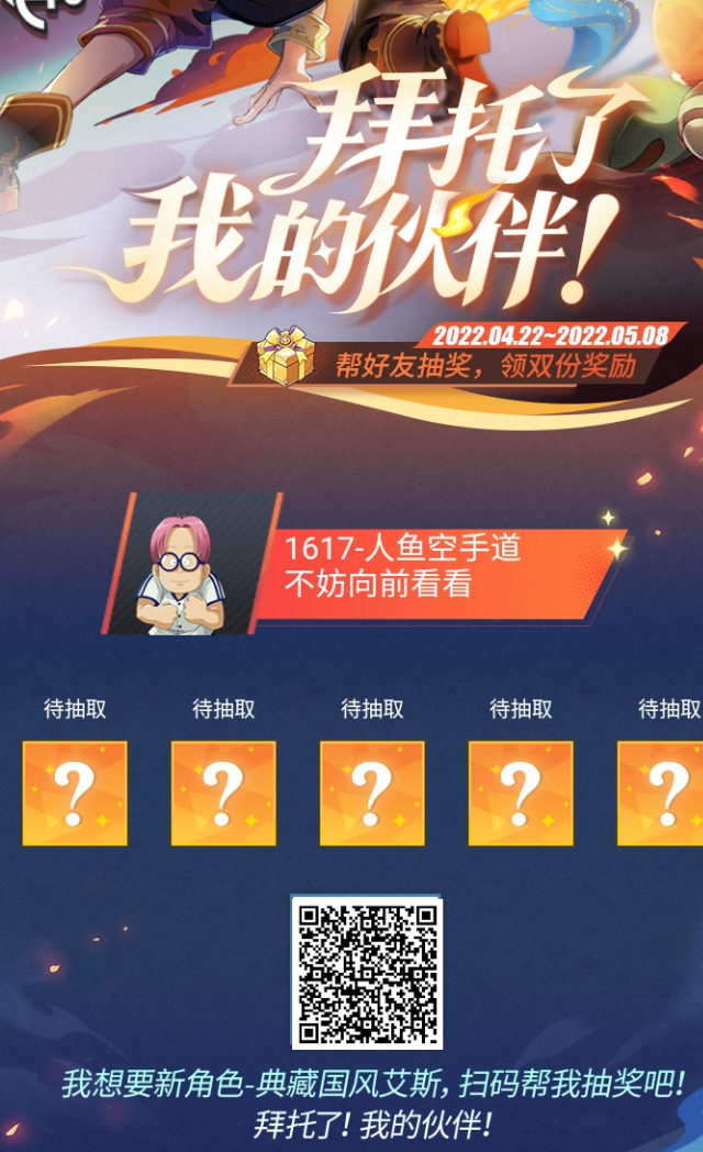 新典藏角色艾斯,参与抽奖奖励成双!点击链接帮我抽奖吧,拜托了!https://act.nvsgames.cn/gms_page/cJp4ZfBO6i/gms/caca283b69/?tk=ZZZV5TLW&orientation=portrait&__gms__platform=mobile