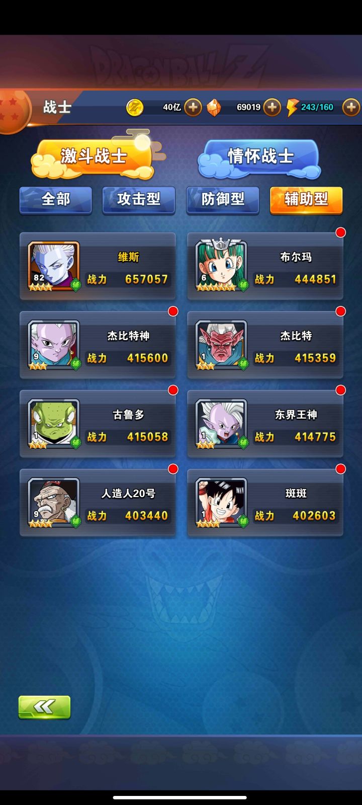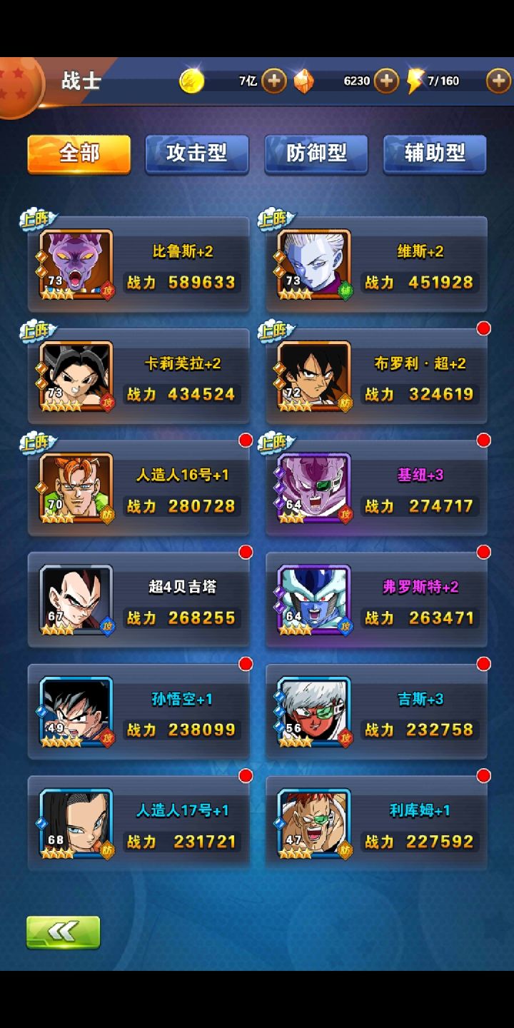 此贴主要讲解不准备上v8的平民玩法,主要阵容搭配(个人理解,有不对的地方感谢大家评论指出)目前龙珠激斗福利,建新号开始便送比鲁斯和维斯,两个老神卡。首先16号,布罗利超,马桶盖身为平民三个神卡,这里我是建议平民玩家全部上阵的。1.布超,(小游戏商店可以换,一个月左右即可出卡)绝招扣怒效果,被动减敌方攻击最高卡的攻击,防御最高卡的防御,是很针对敌方只有一个盒子极限卡的阵容,而且白卡即可上阵。2