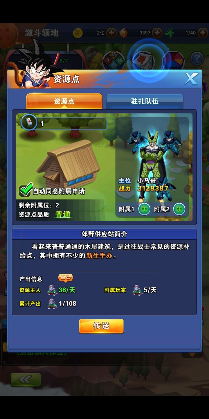 【安卓qq301】大家好我是小马哥,简易介绍一下激斗领地的传送方法,不足之处请多指教。首先先进入激斗领地占私人,然后找到资源屋子点访问占领,这样将功能开启自动同意附属申请,这样同族的人就可和你一起进行传送了!这时建议家族族长组织好队友统一飞行不要独自占用附属资源时间过长,保证后续队友任务的完成。当族内有队友占领这些资源点时你也可以进行申请,也可以实现传送,首先点资源点申请附属,然后点资源管理,资