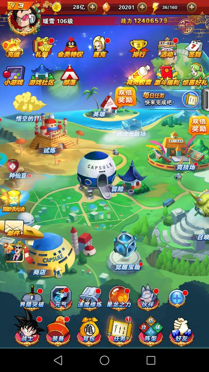 【攻略贴】安卓74龙珠是个养成类游戏,需要一天一天的资源积累,得打好基础,每天一体一金是最基本要求,等级够了可买龙力锁(每天两把),三次世界boss,5次至高争霸,合作大冒险步数,拿宠物建议隔代拿(大佬随意),V8玩家魂匣必拿,不建议跳,就算不上阵,幻化也能加战力,还能加速度。在搞基础的同时,每个月限时的猫必须得满,有幸运占卜时可适当买龙力徽章,限时量力而行
