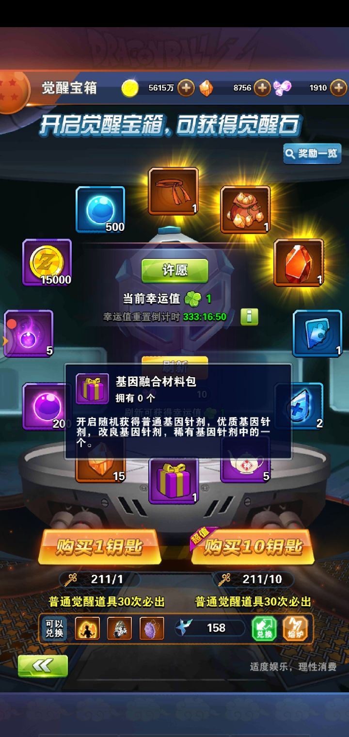 本人来自【ios 微信 3区】id:肥嘟嘟佐卫门大家平时的刷新卷尽量不要用,存起来,钥匙也是,等到七天乐的时候,将刷新卷全部用了,最好能够刷出我下面的这种界面有龙石袋,也有觉醒石,觉醒道具也是最新刚好需要的,这种界面最好,怎么抽都不亏待你的钥匙。如果刷不出这种界面也没关系,等你刷完刷新卷后,你的🍀也够多了,如果界面有龙石袋和觉醒石,就许愿换成需要的觉醒道具这是我平时存的钥匙,刷新卷上次七天