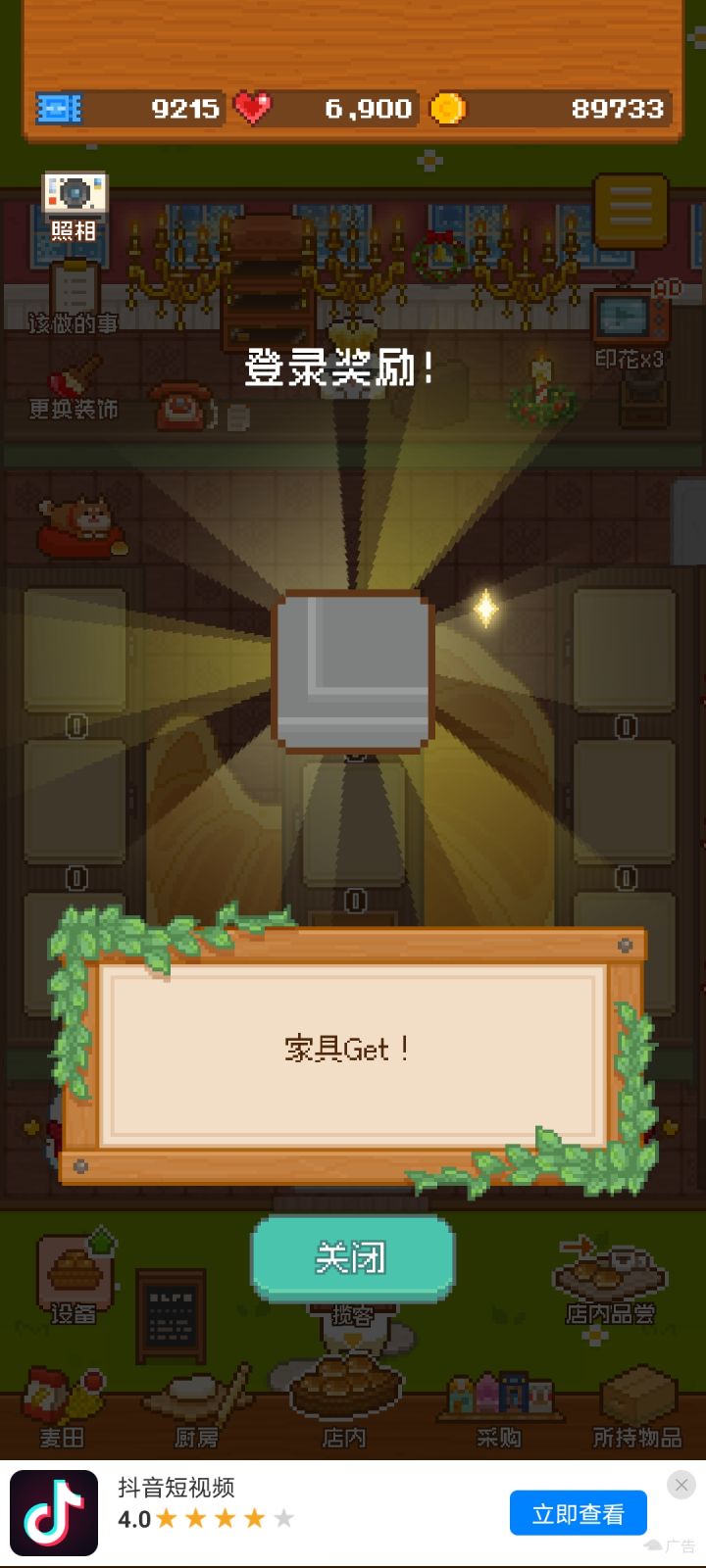 妖精家具店买的特殊家具,应该是圣诞的限定,但是显示不出来。装饰在店里也是空白的