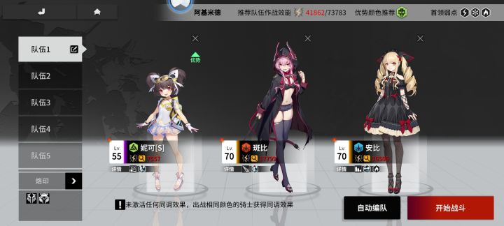 我们进入编队页面会注意到这样的图案:左边代表:天赋右边代表:抗性角色天赋有: 天赋效果仅最高等级生效例如↓图角色抗性有:部分敌人会释放异常效果可以参照↓图编队 动能克制伤害提高30%,后备每秒恢复+1全队暴击伤害提高、攻击力、战技恢复力都有提升。部分角色的战技会触发状态加持:「感电」装甲选择 ↓「冷凝」装甲选择↓「灼烧」装甲选择 ↓﹉﹉﹉﹉﹉﹉﹉