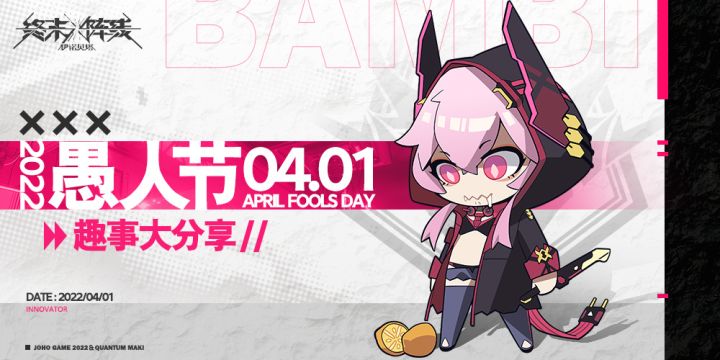指挥官们,就在今天,这个让人“又爱又恨”的愚人节来啦!今天是一个一个骗人不犯法的日子,不知道大家有没有一套耍人的独门绝技or被人整蛊的难忘经历~为了帮助各位更好的领悟愚人节乐趣,福利活动安排上!快来分享你在愚人节被套路或套路别人的故事,即可有机会获得丰厚游戏奖励!【活动时间】2022年4月1日-2022年4月3日18:00【活动奖励】我们将在所有成功参与的楼层抽取3位指挥官获得以下奖项