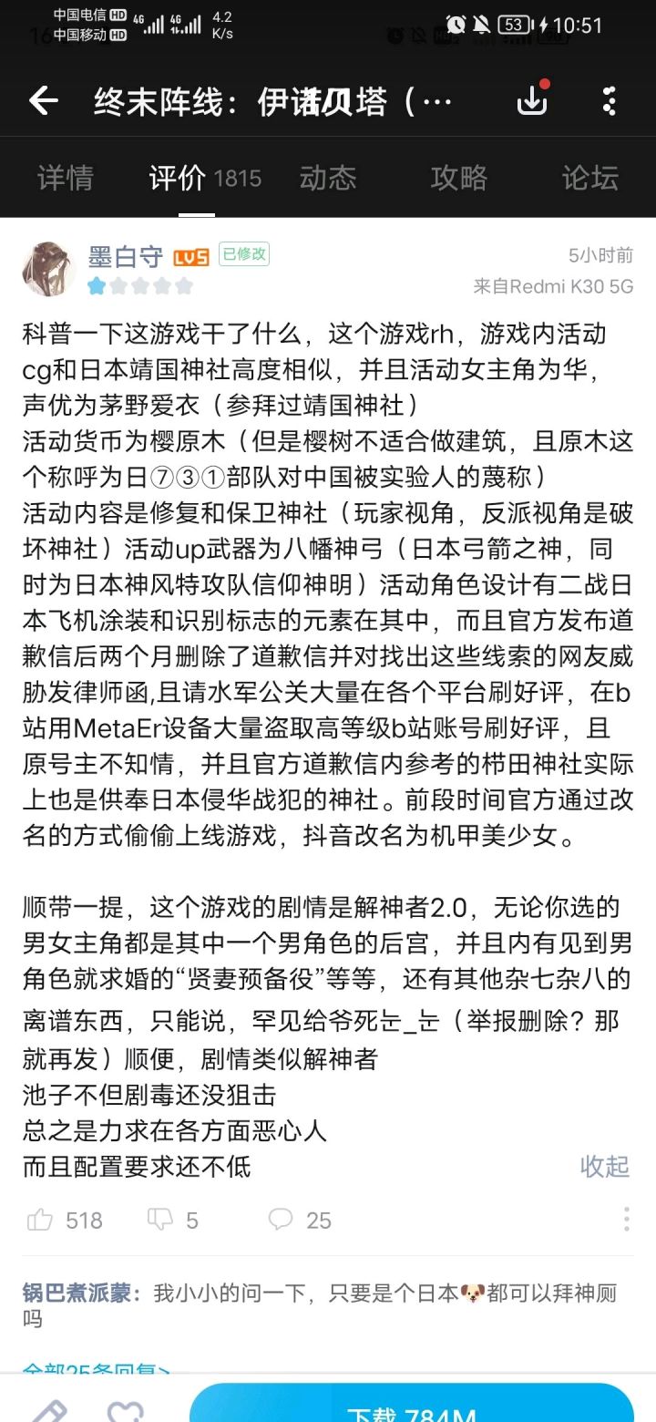 这个游戏之前好像是关注过但是有测试看了下测试内容瞬间就走人了。一点不会感觉好玩,我还不如玩雷电。刚刚在b站乱逛又点去看,不得不说cv做的真好看,很有欲望了解一下。然后来tap在看看,锁的撕裂。原来是这个东西b站评分五点多。讲真的从cv来看这真的是款不错的游戏甚至是精良。一看这玩法,那是真下饭,我原来是被骗了啊。可恶