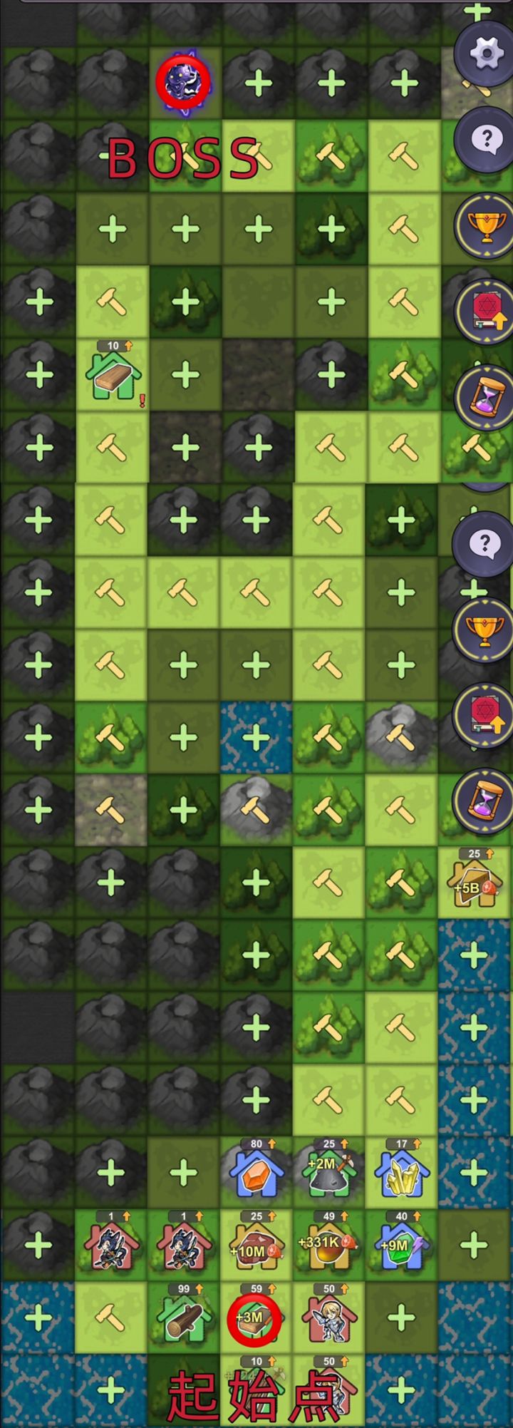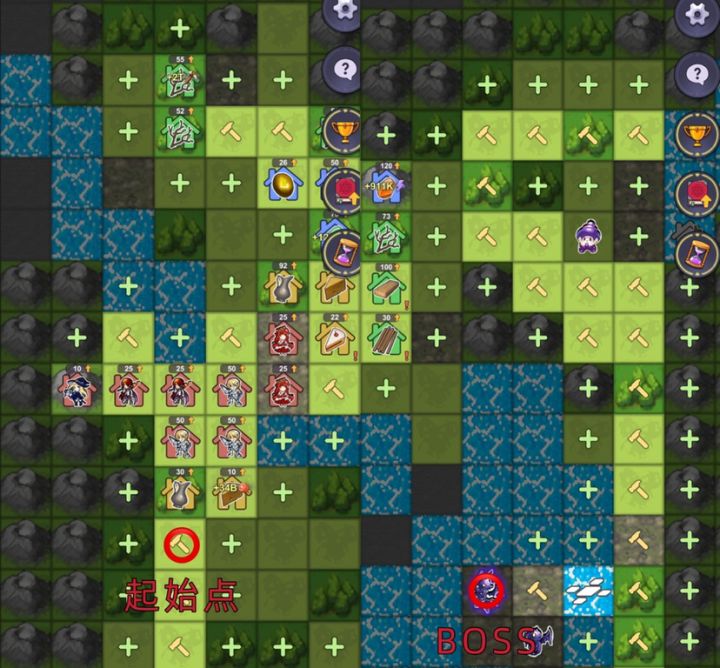 (🙋🏻♀️UP主很在乎点赞收藏,不点赞会很难受)⭐️首先每张图Boss位置和资源塔都是固定位置的。只需要按固定路线扩张就可以,少走弯路,尽早通关*(UP主已通关,我就给路线和BOSS位置,具体怎么玩自己去探索)Boss队伍:(我这个队伍阵容是通关后,随便打的)第二张图BOSS等级65,过关很容易只要知道BOSS位置就等于过关一次打不过那就再等兵回复继续干它,通关只是时间问题