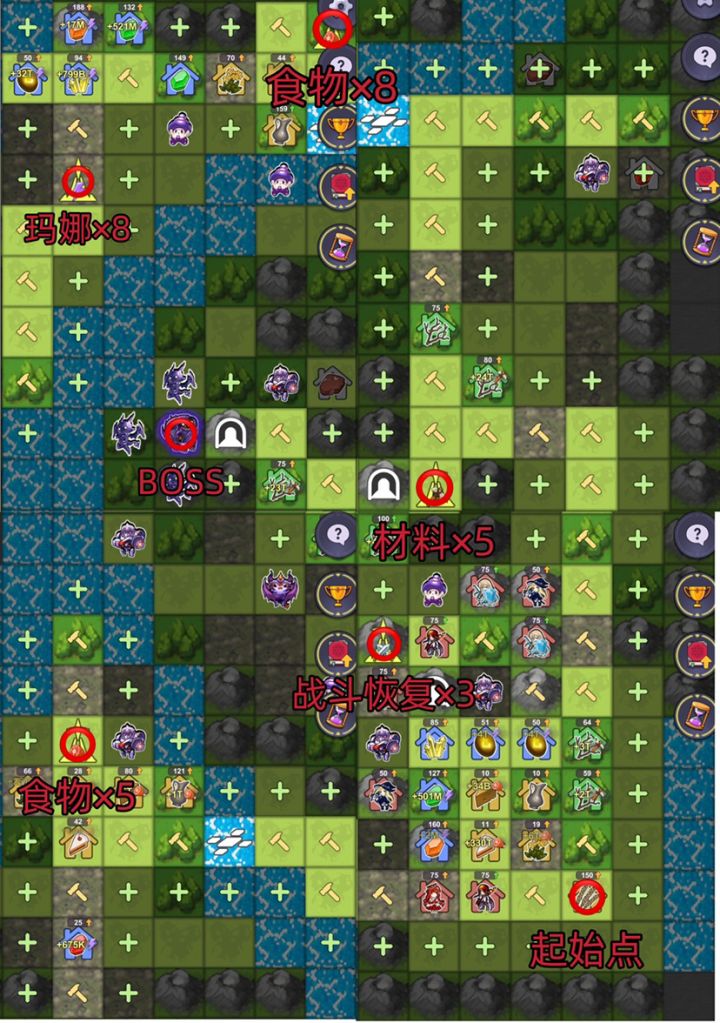 (🙋🏻♀️UP主很在乎点赞收藏,不点赞会很难受)⭐️首先每张图Boss位置和资源塔都是固定位置的。只需要按固定路线扩张就可以,少走弯路,尽早通关*(UP主已通关,我就给路线和BOSS位置,具体怎么玩自己去探索)Boss队伍:(我这个队伍阵容是通关后,随便打的)第二张图BOSS等级75,过关很容易只要知道BOSS位置就等于过关一次打不过那就再等兵回复继续干它,通关只是时间问题