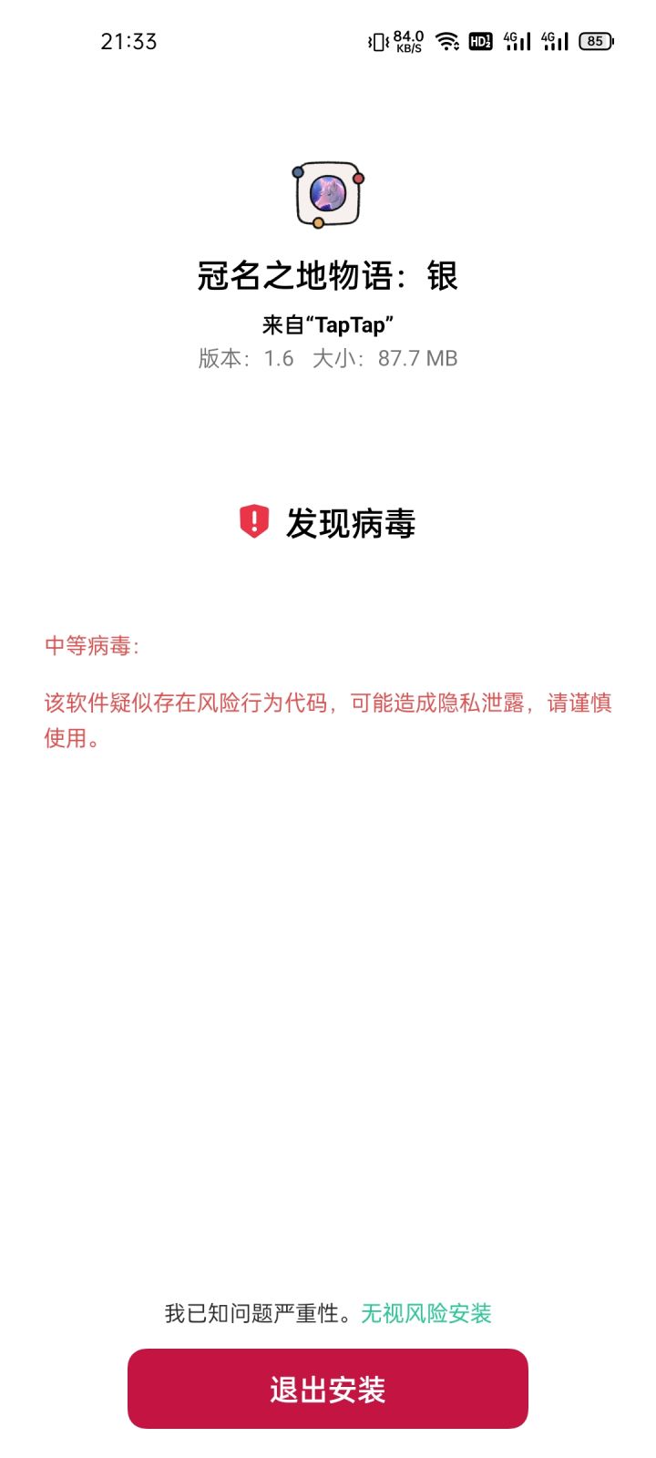 安装显示不良信息