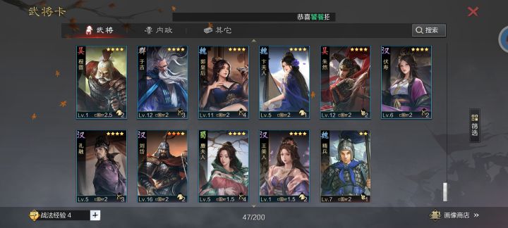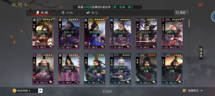 【第五队】张机魏延+物理大营能抗能打!鬼无敌、赵无敌、连这个姬也无敌!大营用兵无、击势、愈战都是可以玩的,有啥给啥。 赵云放前锋也可以马超肉刀还是能玩的,用疏数鼎足都可以。【第六队】神赏砍王马超魏延曹操开荒快,转型强,中低端局的前期霸主!如果没有吕蒙的,而且觉得只出四队就够的,还是可以玩这队的,强度是不错,但是对主城队伍的构建有点影响,大多数账号不适合。【第七队】大张张白板打架也很