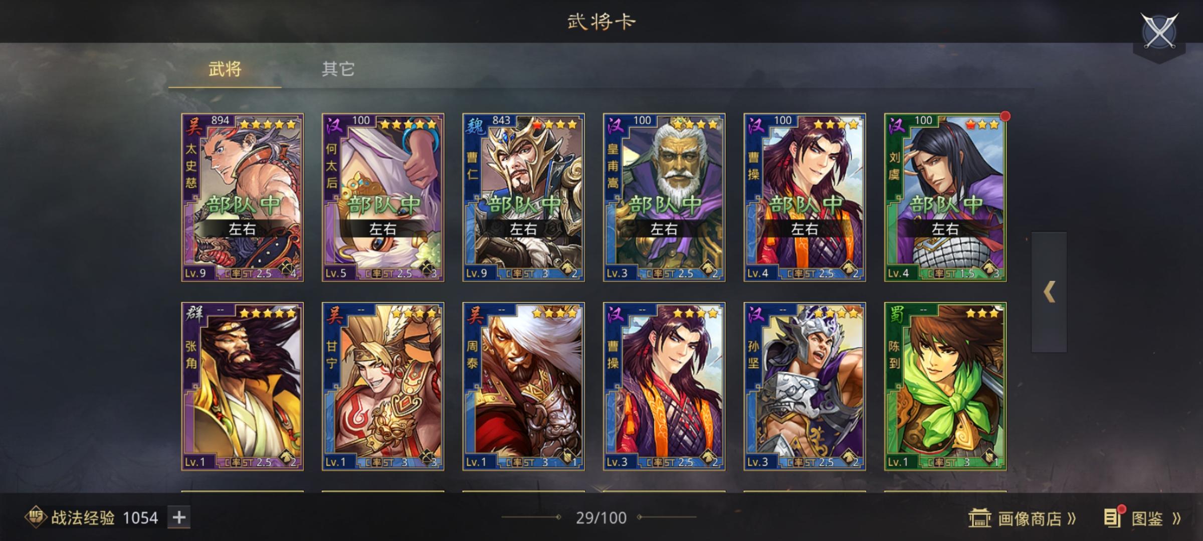 这游戏,我玩了2赛季了,第一赛季认真玩了会,我有2个号,一个月卡一个6元的,感觉月卡的号脸是真的黑,可能是s2没怎么玩的原因吧,s2月卡号只出了17个5,6元的号出了18个。按道理月卡应该也至少25个啊。6元的号经历了2个赛季,s2也是没怎么玩的,详细如下。给大家看看六元到底能不能玩下去,也给六元党看看经常武将还是有的慢慢来。9个5星战法的6元号,马上s3了,s2没怎么玩,所以武将可能比较少的点