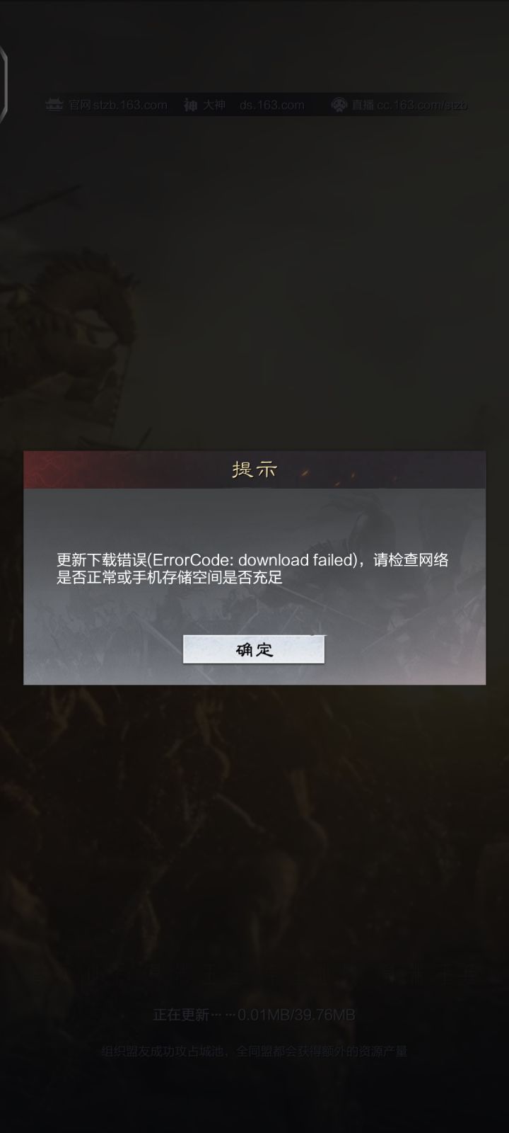 有没有大佬知道率土资源包有多大,在手机网络正常和内存剩余37G的情况下一直弹出这个界面,求解决方法(重新下载也不好用)