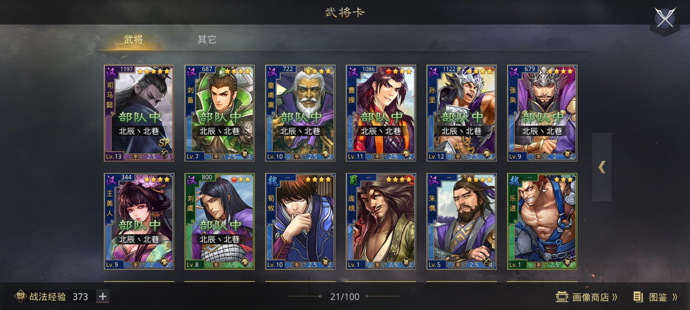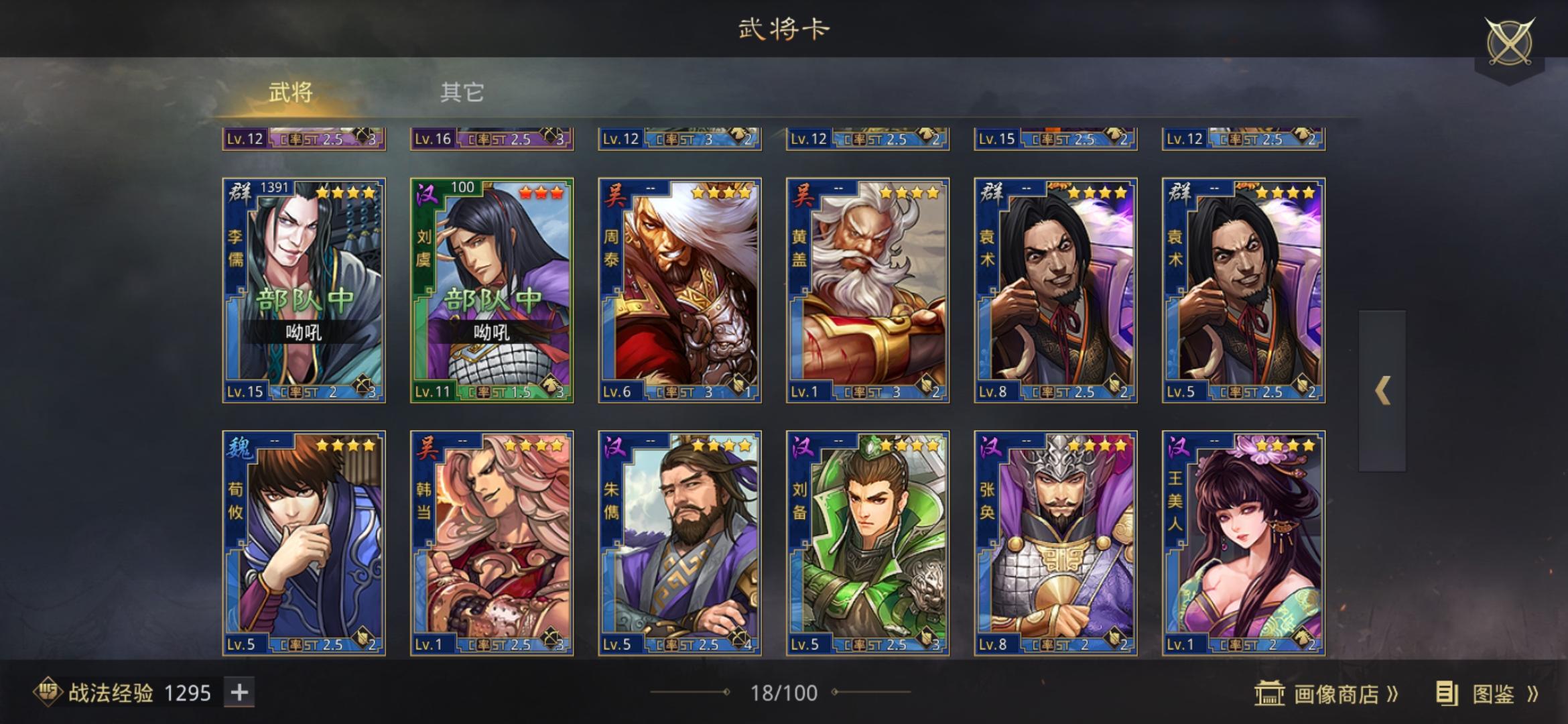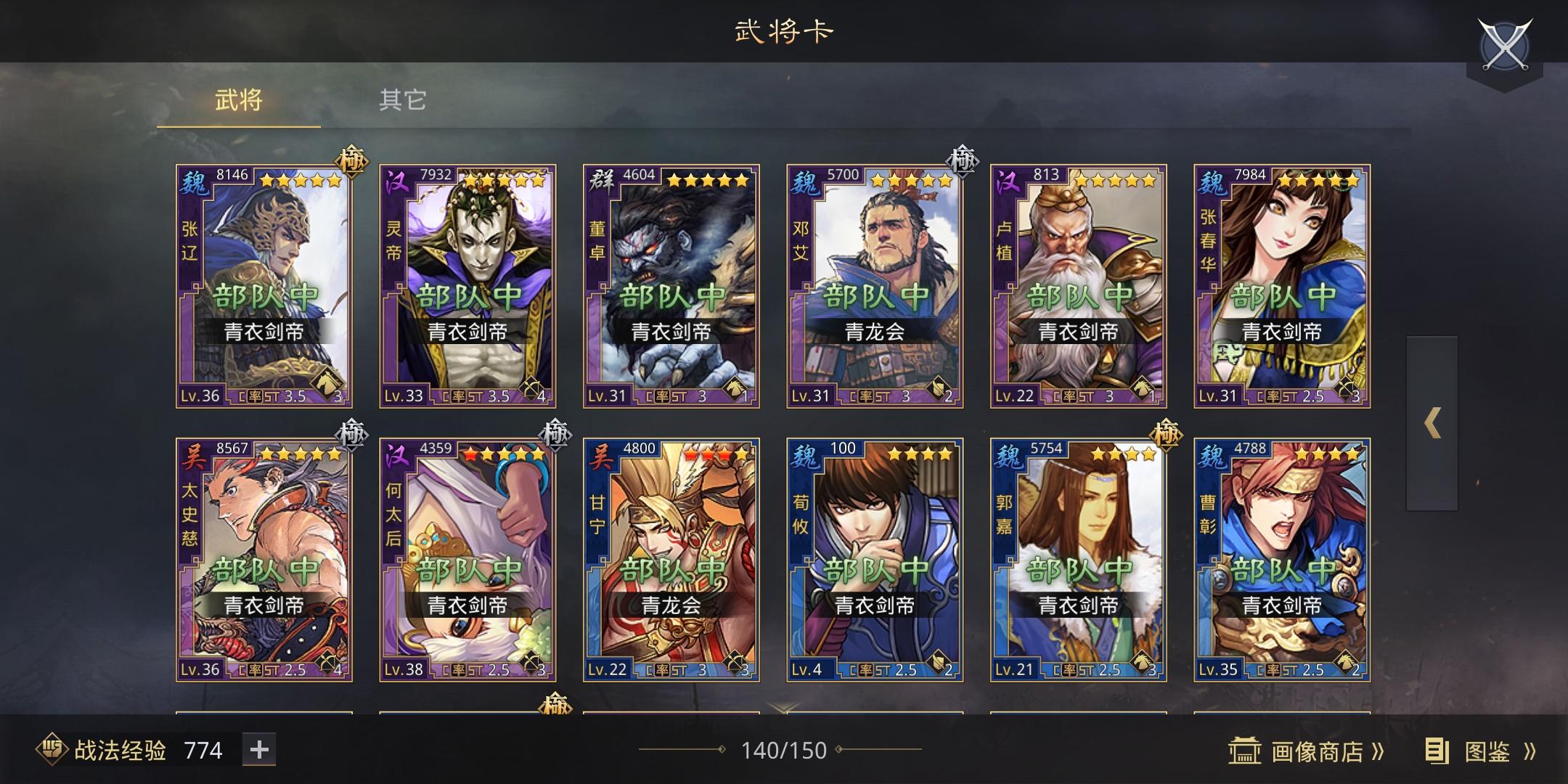 玩有四十来天,之前也弃坑过十来天,抽卡记录:两个袁绍、两个邓艾、两个张角、许褚、张春华、何太后、卢植、董卓,简直秀的飞起啊,一个能用的都没有!要不是陈情给张辽早就不玩了。这号一赛季也快结束混个割据后面能玩吗?号很黑抽卡都是三十抽以上才给将,而且平常都是一个四星带四张三星,四星都是稀有
